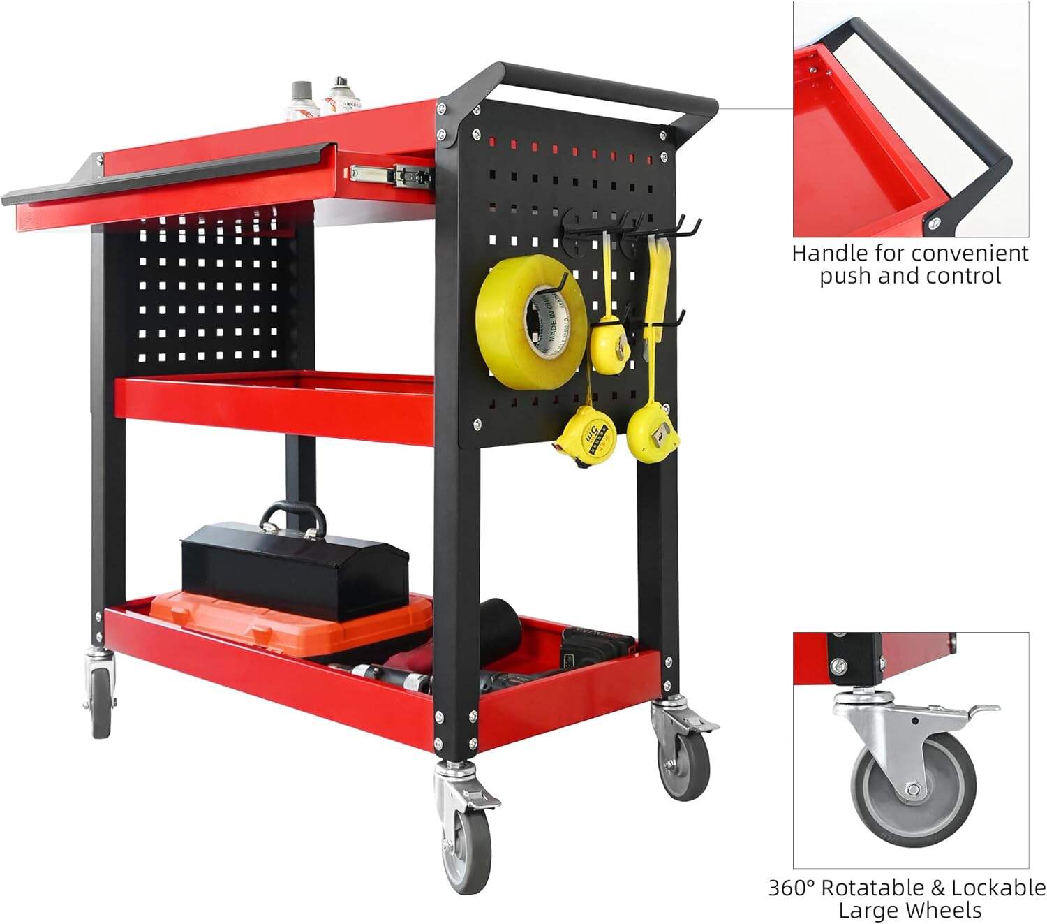 3 Antas na Multifungsiyonal na Kumikiling na Kariton para sa mga Kagamitan na May Drawer